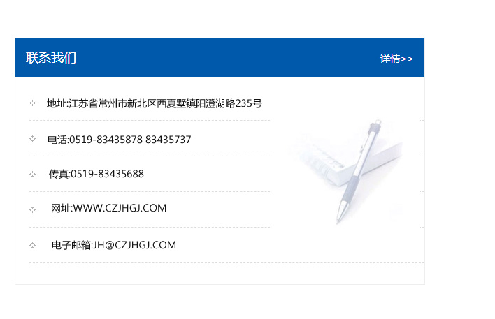 地址:常州市新北區友邦商務大廈1幢16、17層  電話:0519-85101652  傳真:0519-85112595  郵編:213022  網址:www.cz-jiayue_cn.jiaqicn.com  郵箱:xiajifengaa@163.com